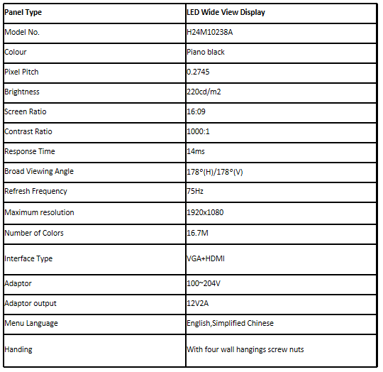 | Monitor size | 556*52.3*333.0mm(without stand) | 556*52.3*333.0mm(without stand) | |